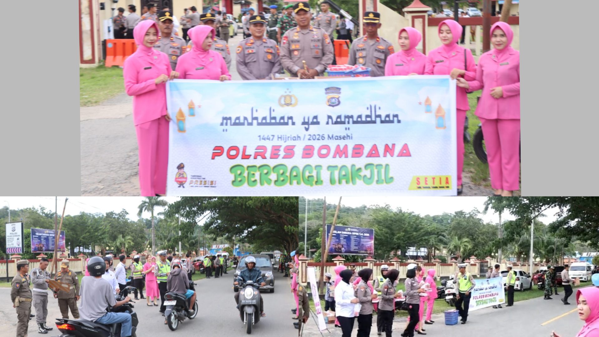 BOMBANANEWS.COM – Dalam semangat berbagi di bulan suci Ramadhan, jajaran Polres Bombana menggelar kegiatan pembagian takjil kepada masyarakat. Kegiatan sosial tersebut dilaksanakan pada Senin, 23 Februari 2026, di depan Mako Polres Bombana sebagai bentuk kepedulian terhadap warga yang menjalankan ibadah puasa.