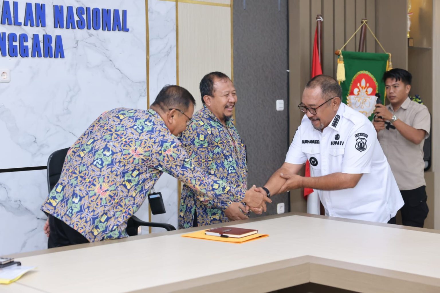BOMBANANEWS.COM – Upaya Pemerintah Kabupaten Bombana untuk mempercepat pembangunan infrastruktur terus dilakukan. Bupati Bombana, Ir. H. Burhanuddin, M.Si, melakukan audiensi dengan Balai Perencanaan dan Pengawasan Jalan Nasional (BPJN) Wilayah Sulawesi Tenggara (Sultra) untuk membahas kondisi sejumlah ruas jalan nasional dan jembatan yang memerlukan penanganan segera di wilayah Kabupaten Bombana.