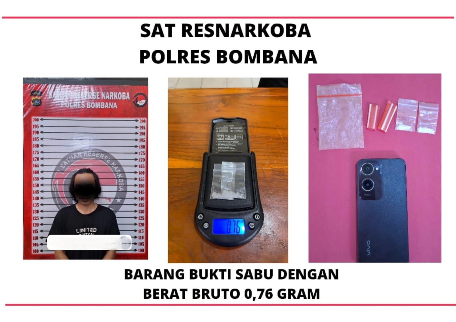 Polisi menyita seluruh barang bukti dengan total berat bruto 0,76 gram sabu-sabu.
