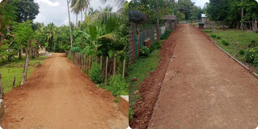 BOMBANANEWS.COM – Sejumlah ruas jalan yang menghuhungkan antar lingkungan di Kelurahan Rahampuu, Kecamatan Kabaena, yang merupakan rabat beton ditimbun menggunakan material tanah.